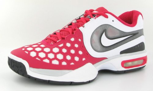 #Chaussure de tennis top performance, la Nike Air Max Courtballistec 1.3 offre une meilleure respirabilite et la technologie Max Air vous donne une protection optimale contre les chocs au niveau du talon. Colris : Rouge Scarlet/Blanc. Empeigne en cuir et en synthetique avec elements en maille pour une plus grande respirabilite et un meilleur maintien.Semelle intermediaire en Phylon avec unite Air-Sole encapsulee pour un amorti optimal et une protection exceptionnelle contre les chocs.Semelle d usure en caoutchouc avec structure en saillie pour une meilleure protection laterale et pour une adherence et une resistance optimales.